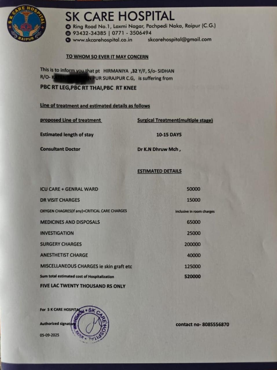 Note - Any amount raised beyond the required treatment cost will be used to support other individuals who were less fortunate and could not receive the help they needed.