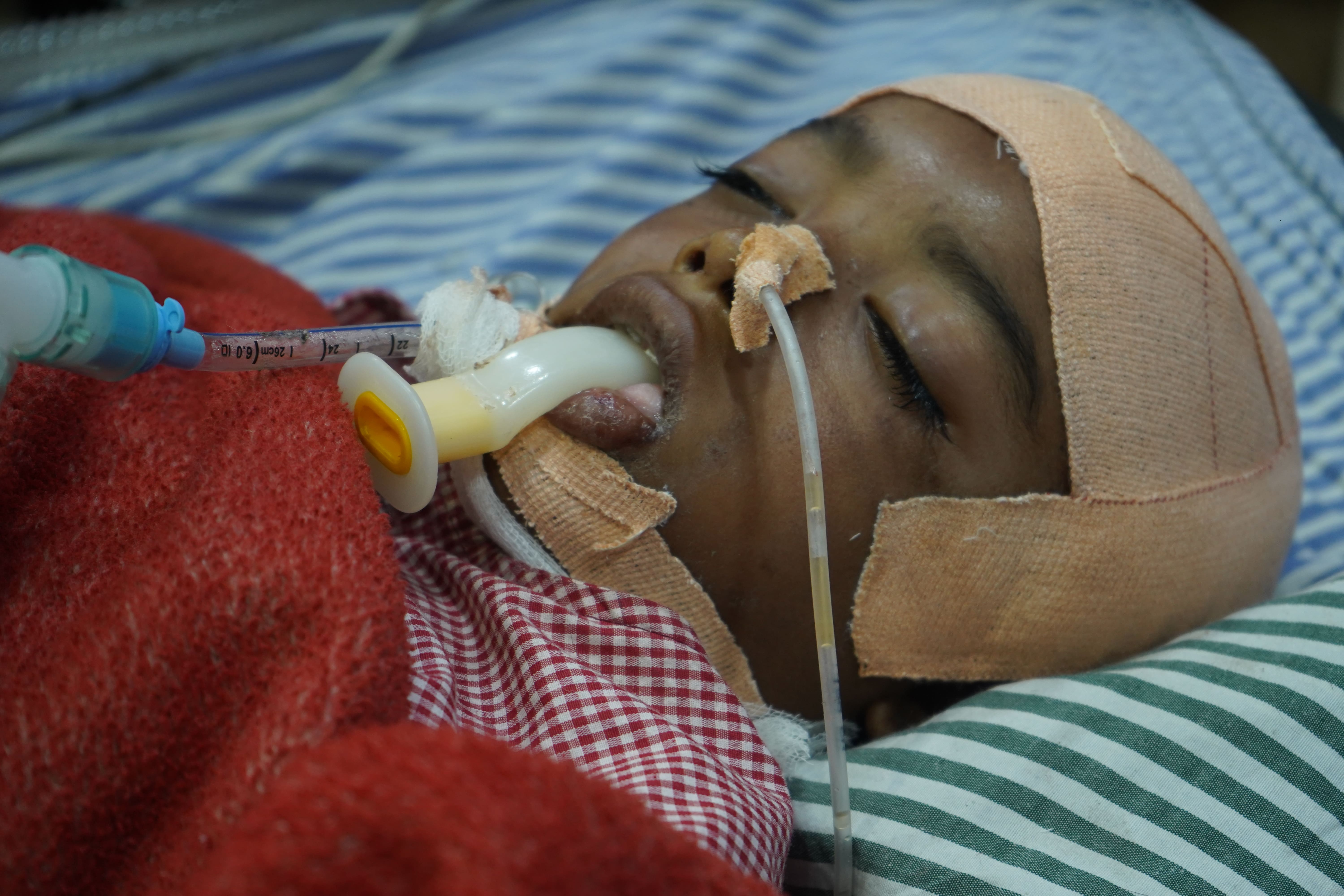 He has already undergone a painful brain surgery in an attempt to save his life. But the danger is not over. He remains critical and continues to require ICU care, medicines, monitoring, and advanced treatment.