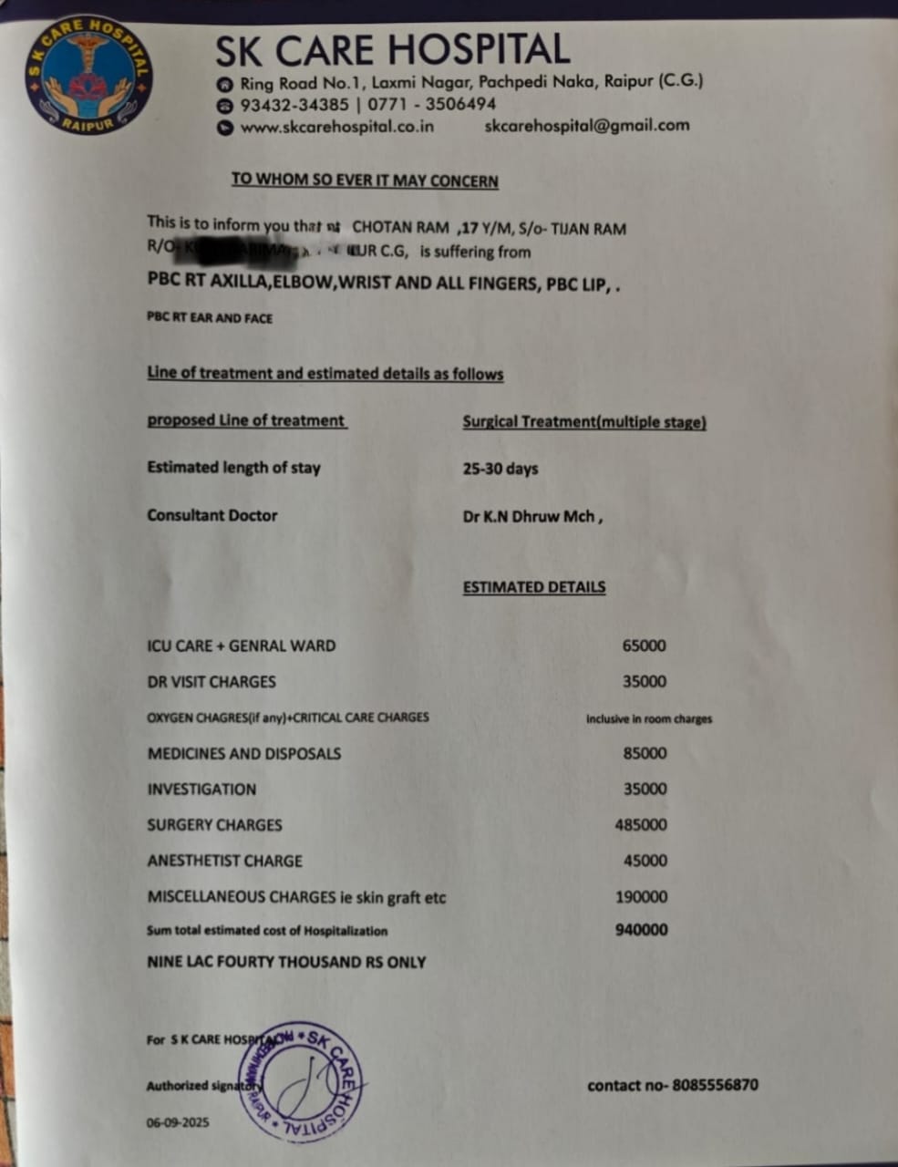 It’s a steep amount, but it’s the only path for Chotan to regain use of his hand, heal his scars, and prevent future infections. Without it, his burns will remain a lifelong disability stealing his chance at education, work, and dignity.