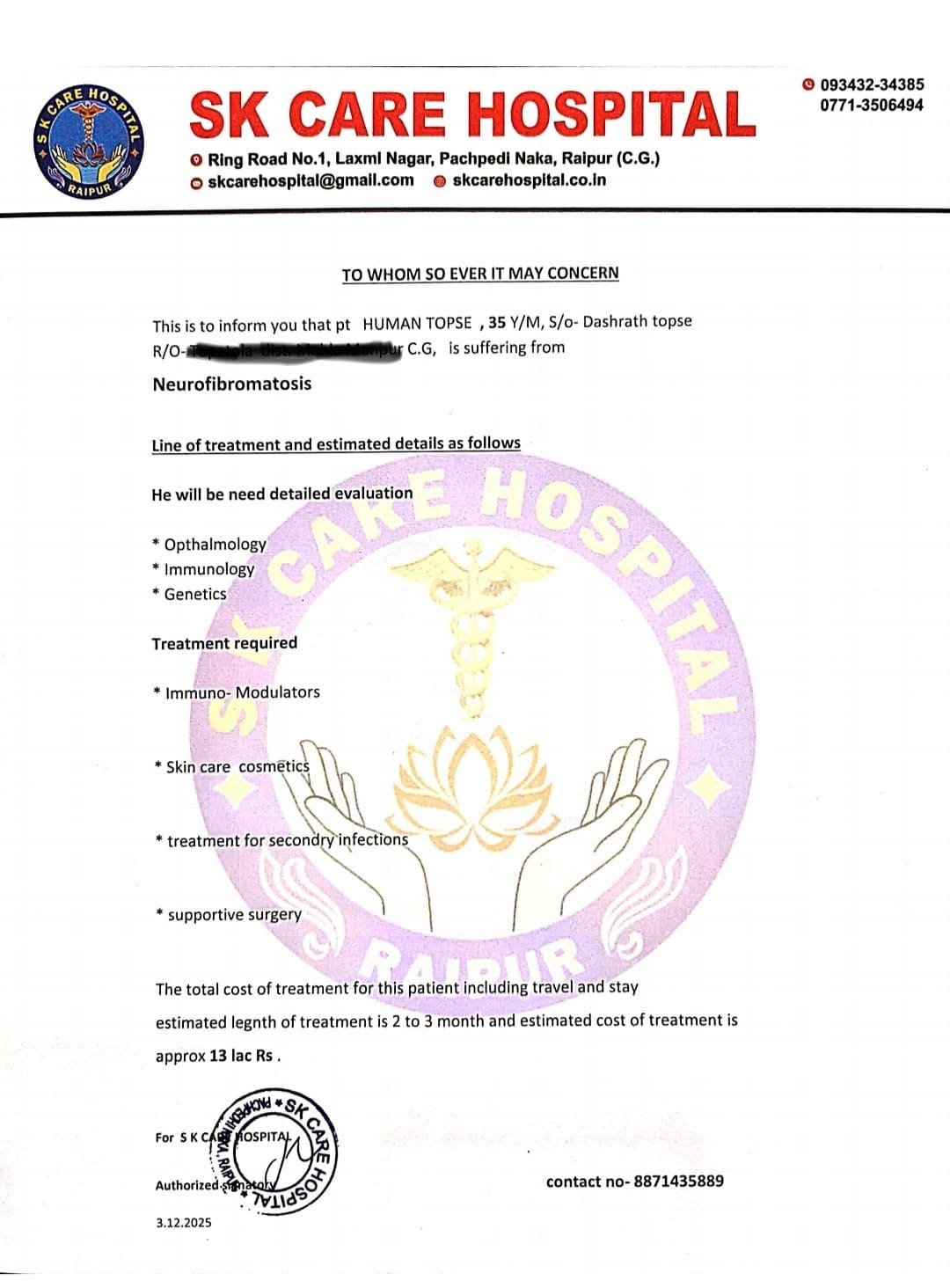 Note - Any amount raised beyond the required treatment cost will be used to support other individuals who were less fortunate and could not receive the help they needed.