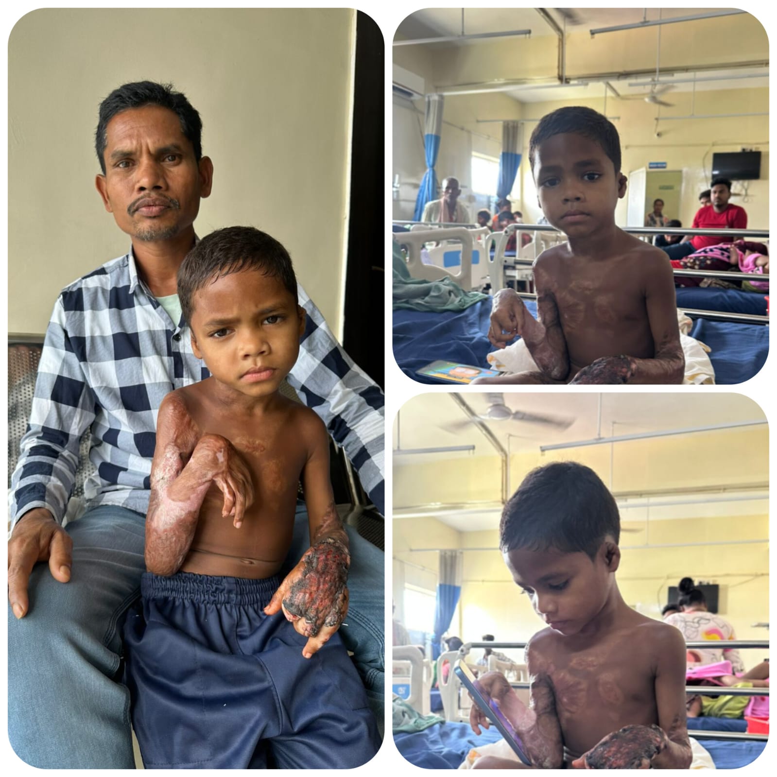 Six-year-old Kamal should be spending his days laughing, playing with his elder brother, and running around the fields of his village in Surajpur, Chhattisgarh. But instead, his childhood has been replaced with unbearable pain. One tragic day, while playing near the house, Kamal’s shirt caught fire. The flames spread quickly and before his parents could pull it off, the cloth melted onto his delicate skin. They rushed him for treatment, but the cost was so high that they simply couldn’t afford it. Desperate to save their child, they tried using herbal remedies at home but it only made things worse. The wounds got infected, pus spread, and Kamal’s condition became critical.