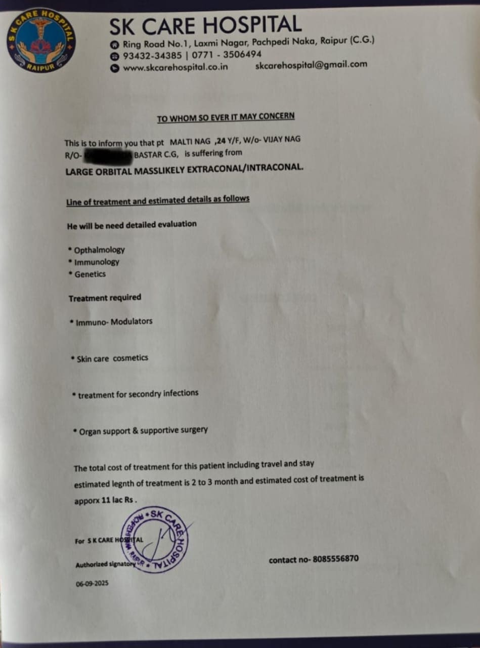 Note - Any amount raised beyond the required treatment cost will be used to support other individuals who were less fortunate and could not receive the help they needed.