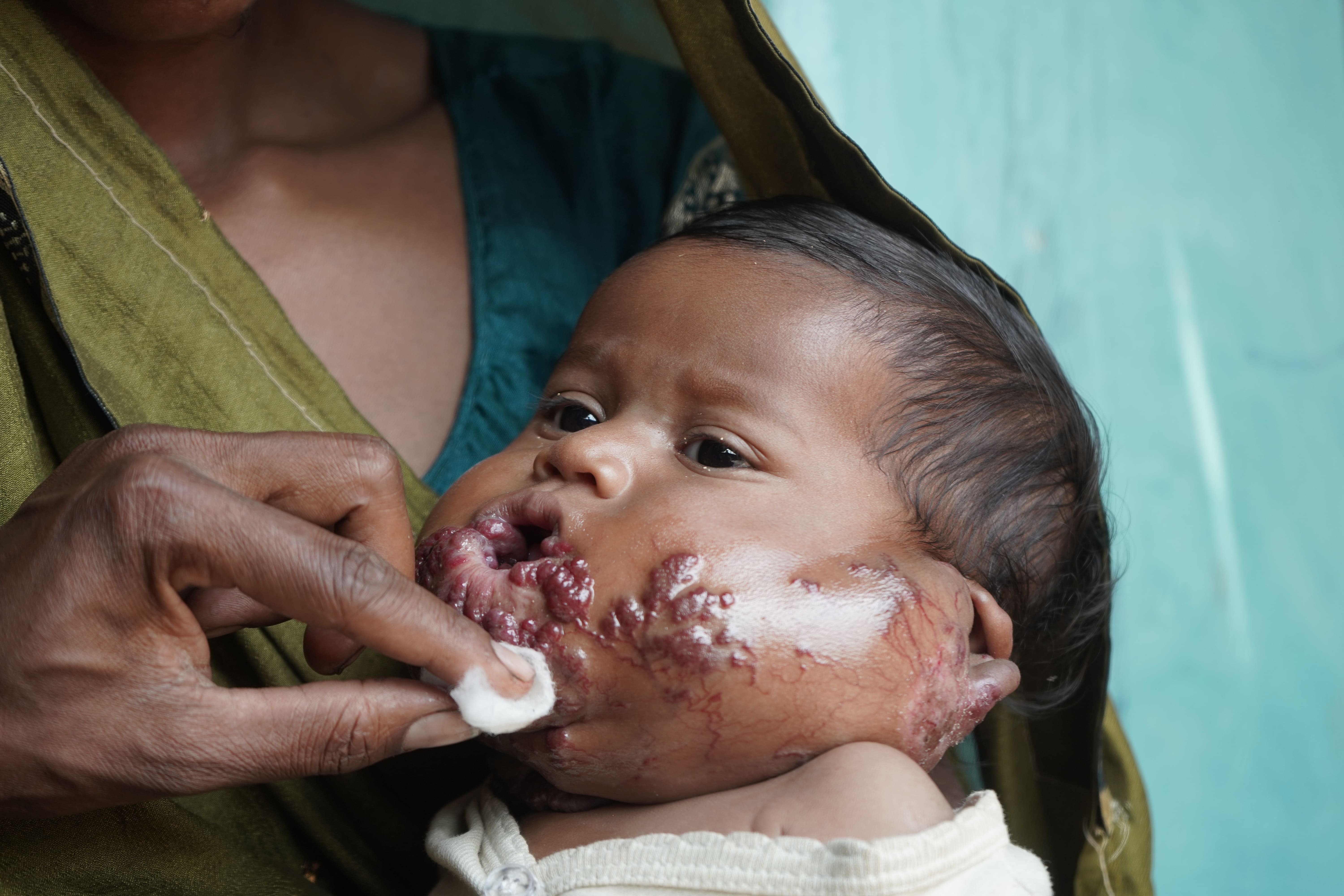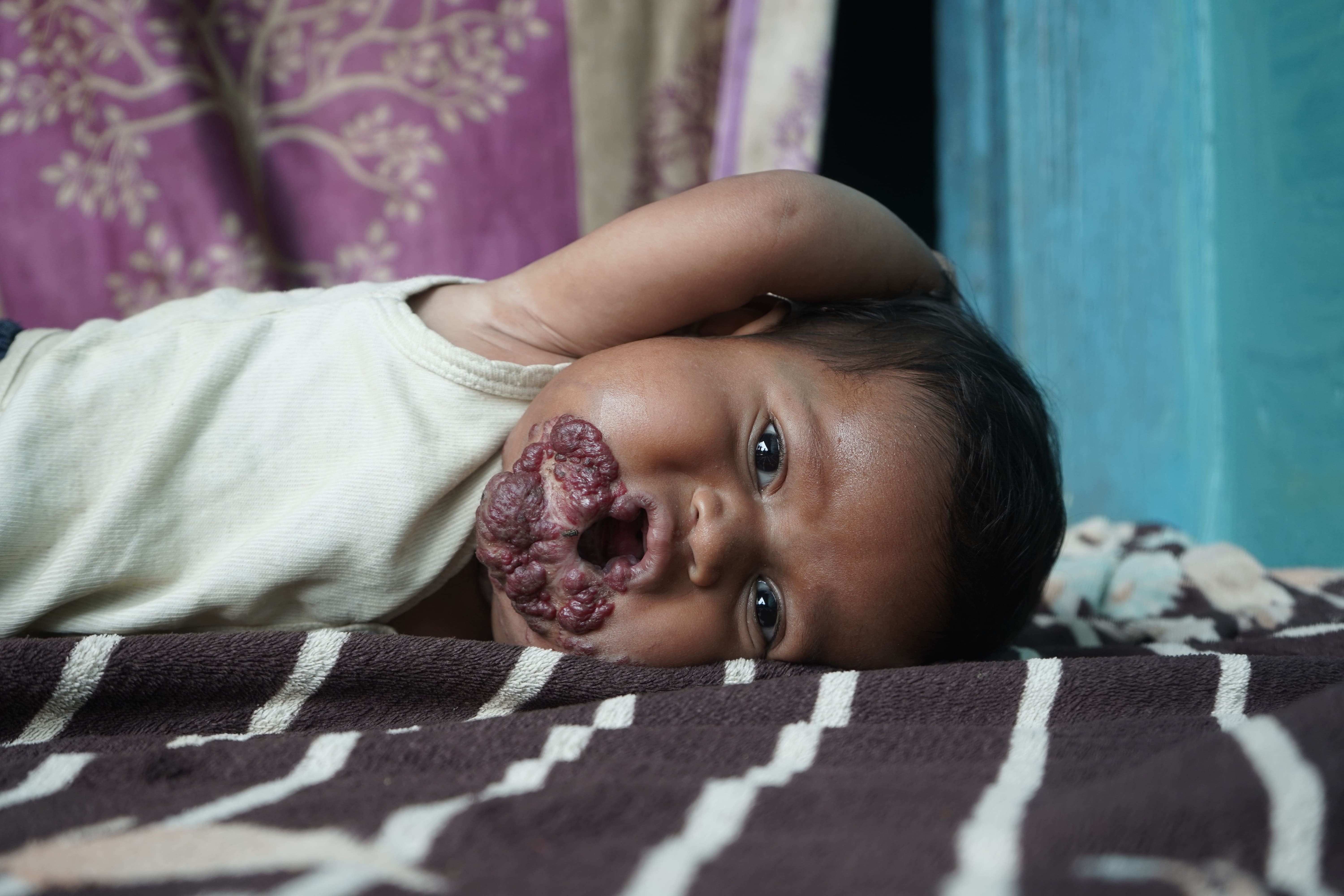 Today, doctors have diagnosed Rudrakshi with lip hemangioma, a condition where abnormal blood vessels form a mass that continues to increase in size. What seems like a swelling from the outside is much deeper within, affecting her face and threatening her ability to feed and grow normally.