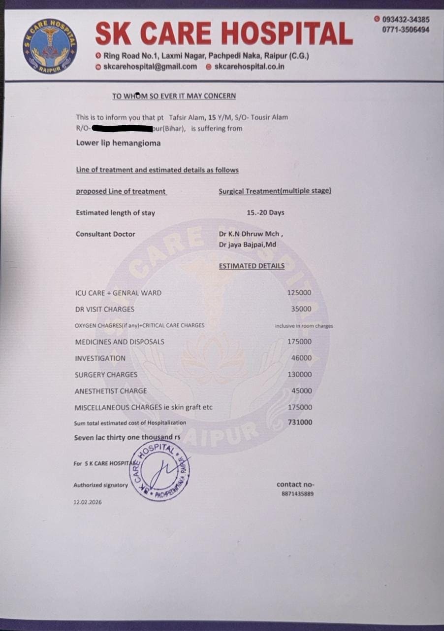 Note - Any amount raised beyond the required treatment cost will be used to support other individuals who were less fortunate and could not receive the help they needed.