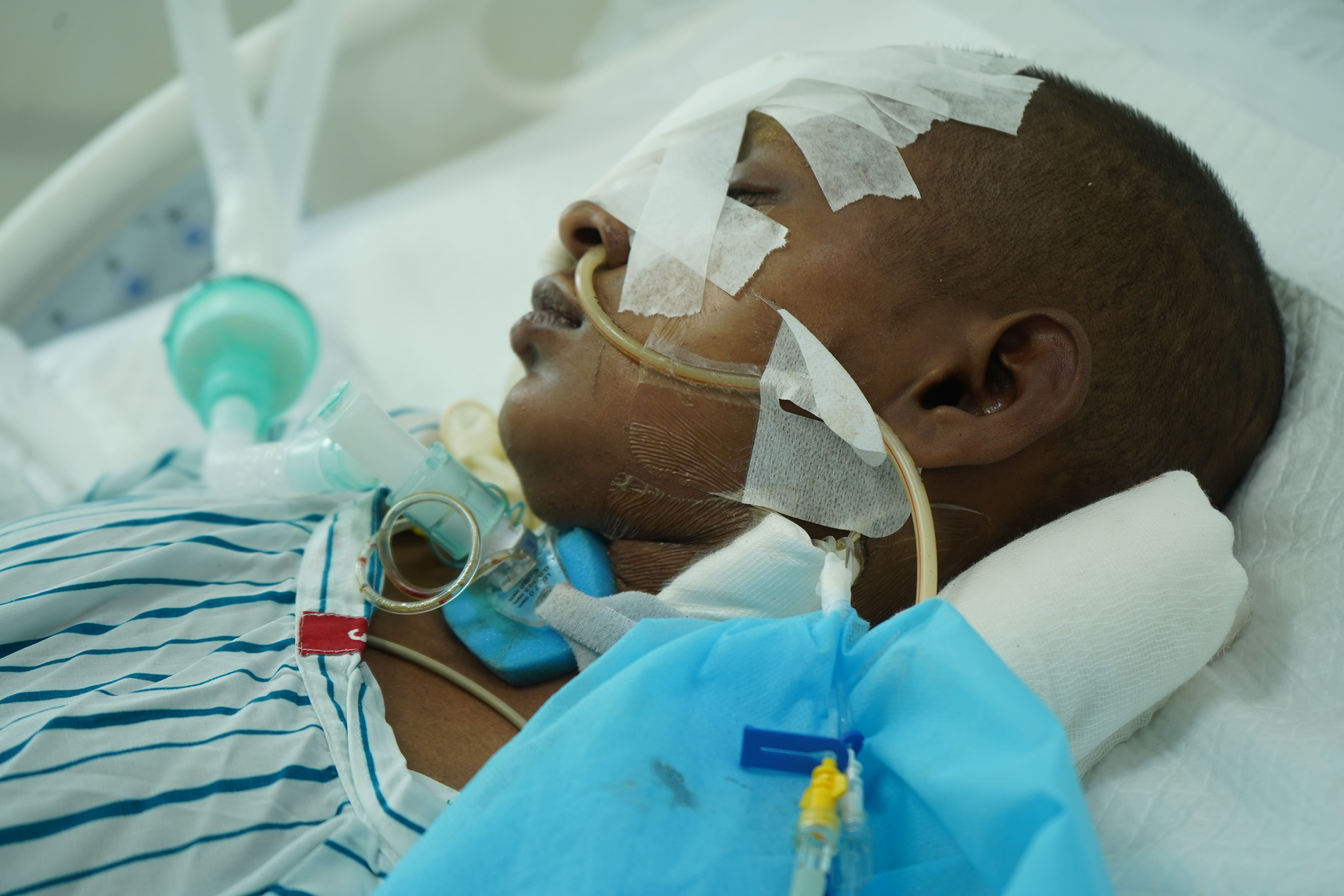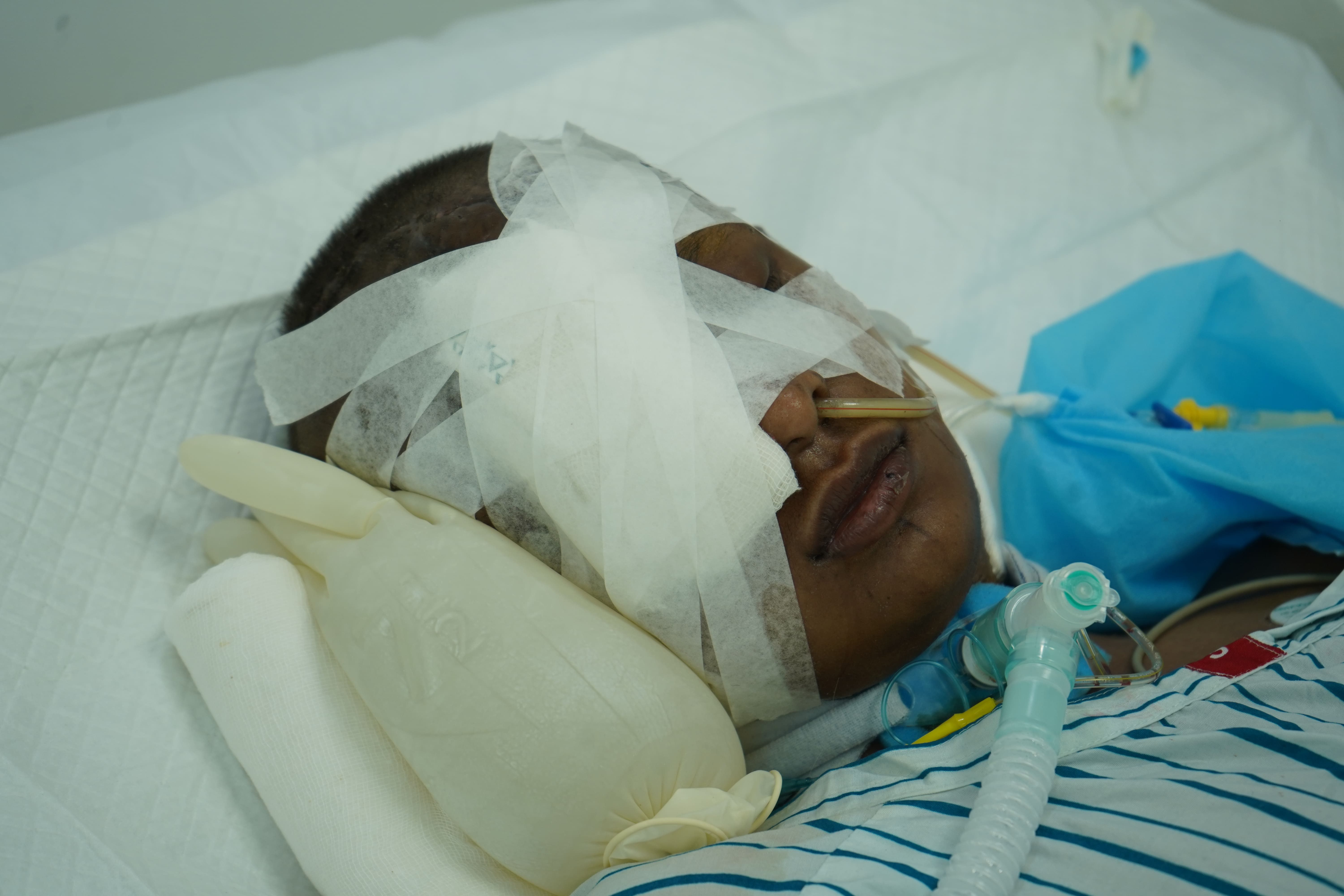 When Tejas’s parents reached the hospital, they could not recognize their own child. His father says, “When I saw my son, half of his head was gone. From his head to his eye, it looked like something had eaten him.” Tejas’s face was completely crushed. Doctors later explained that most of the bones in his face and skull were destroyed.