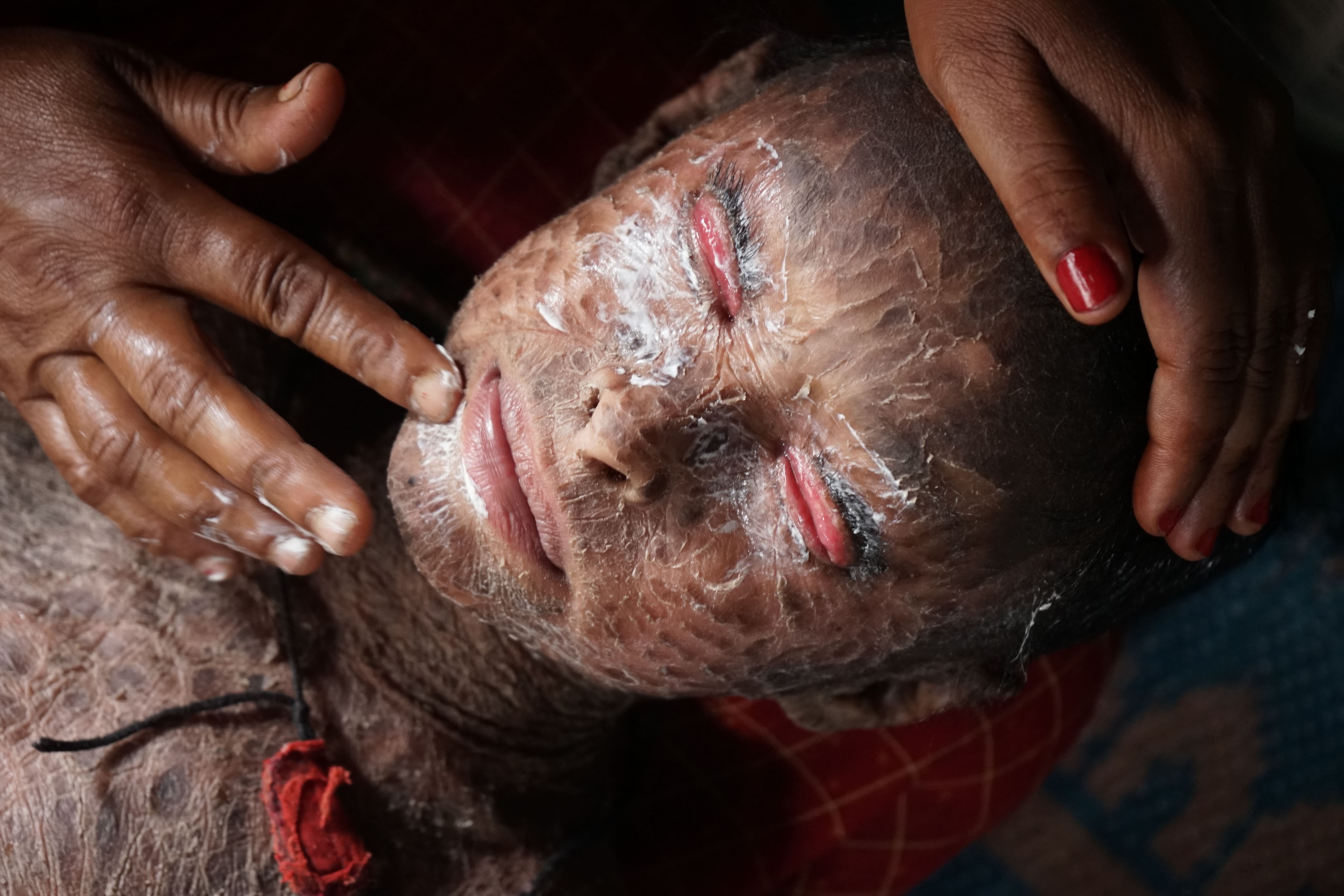 While other children play under the sky, Lukeshwar must stay covered from head to toe—even in school. His classmates see his layers of cloth. What they don’t see is the pain hidden beneath every step, every breath. His skin doesn’t heal. It scars. It burns. It hurts.And it’s not just the surface. His organs are at risk. Doctors warn he now needs urgent, prolonged treatment—across dermatology, immunology, and organ care—to survive.
